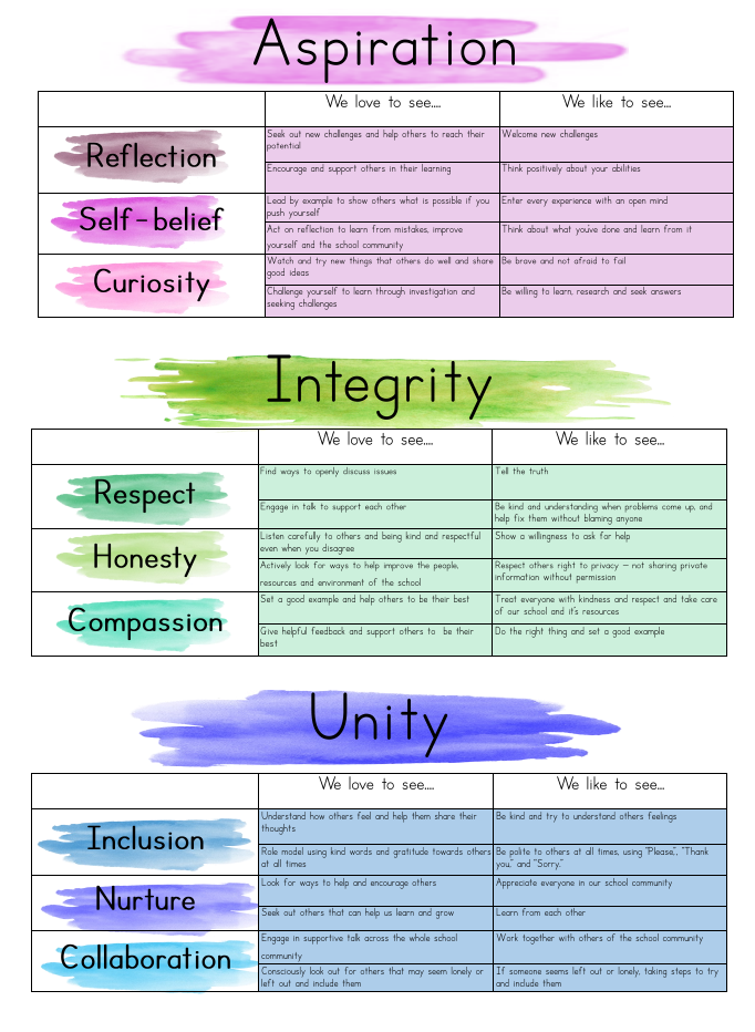 Through our values of Unity, Integrity and Aspiration we aim to inspire our children to aspire